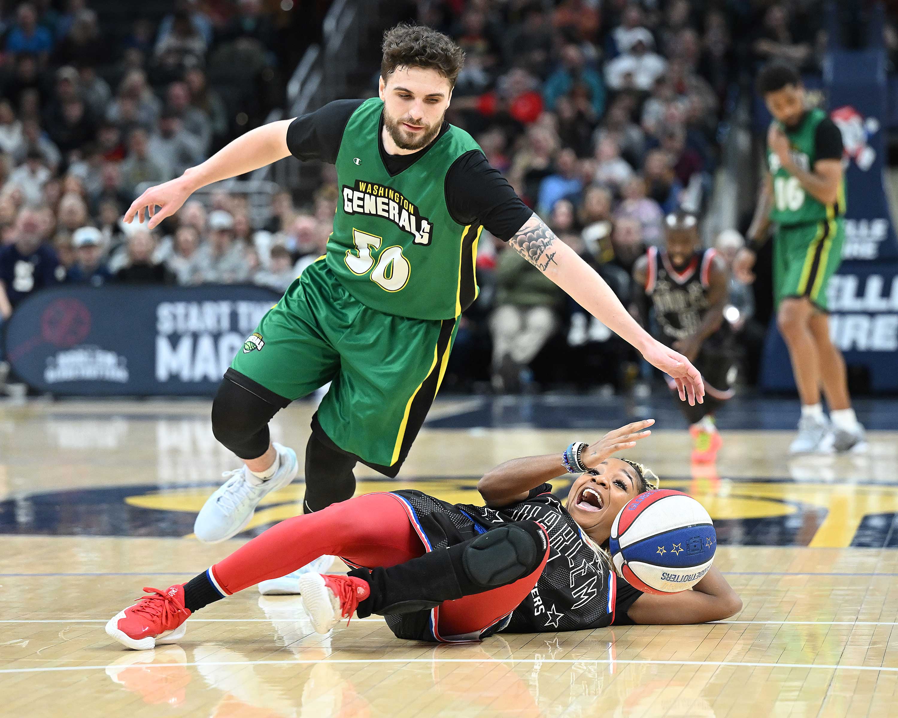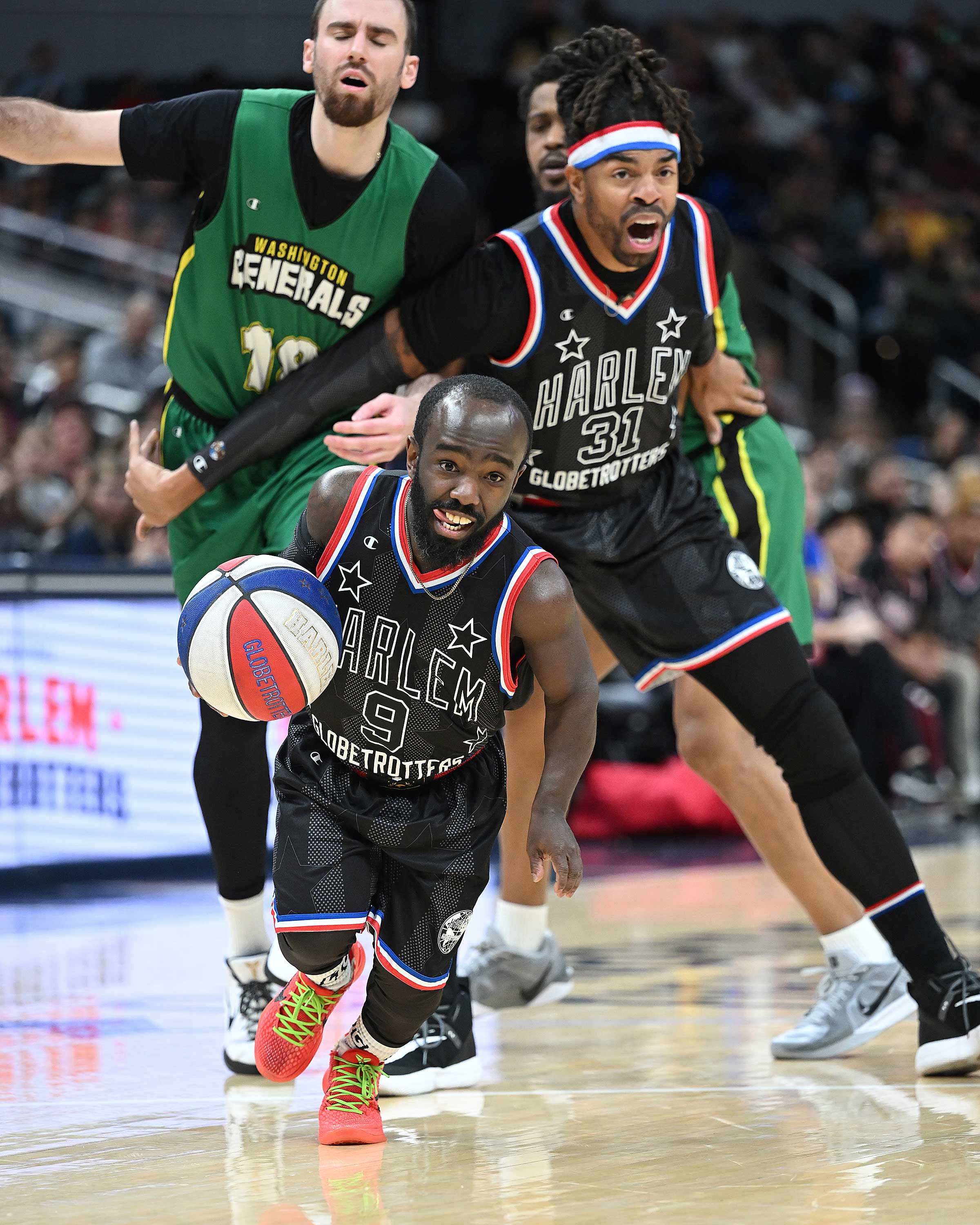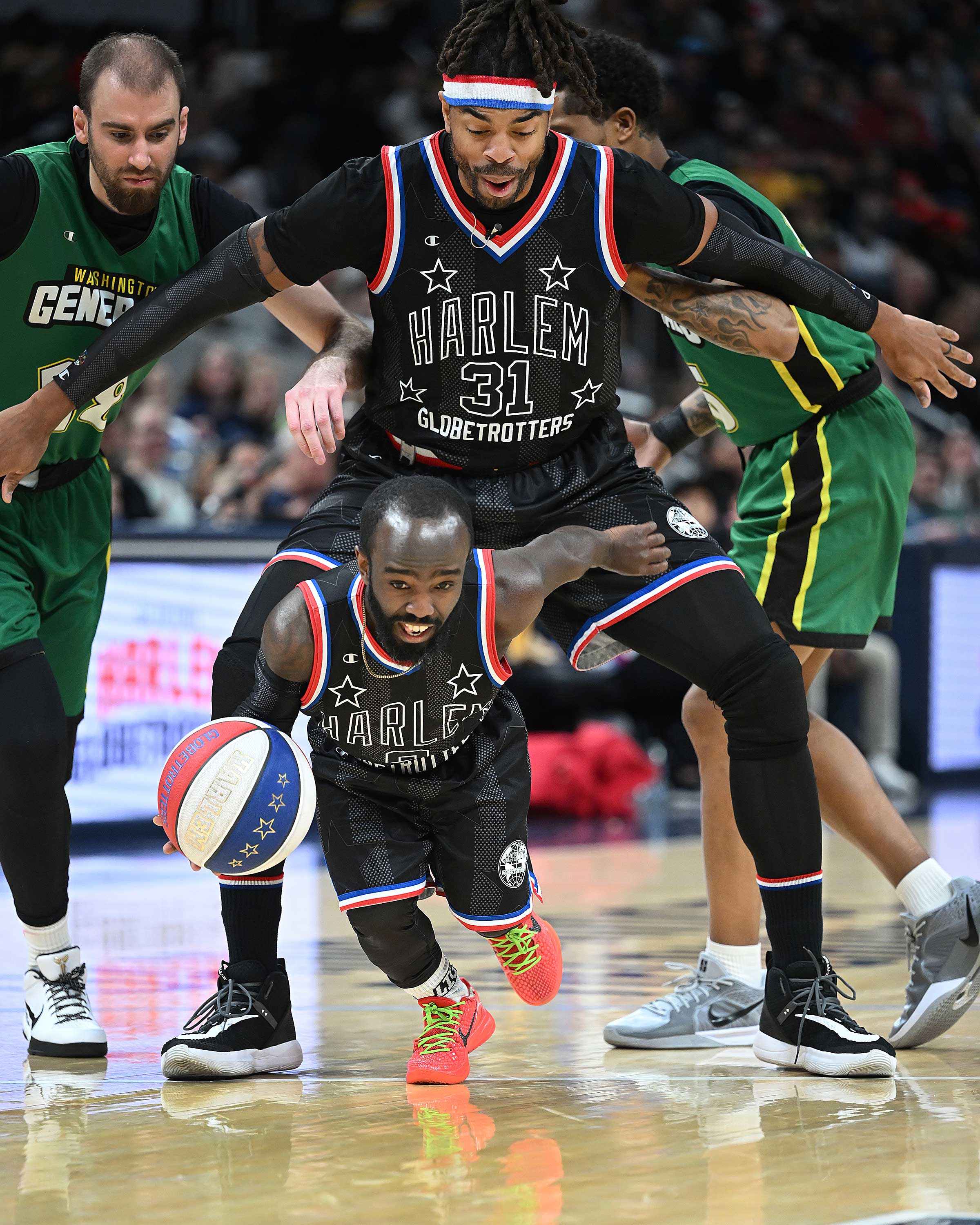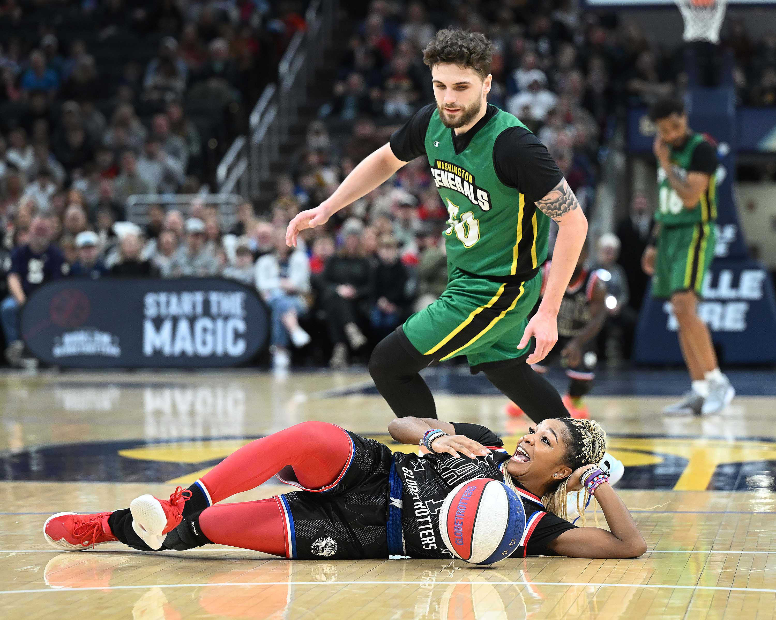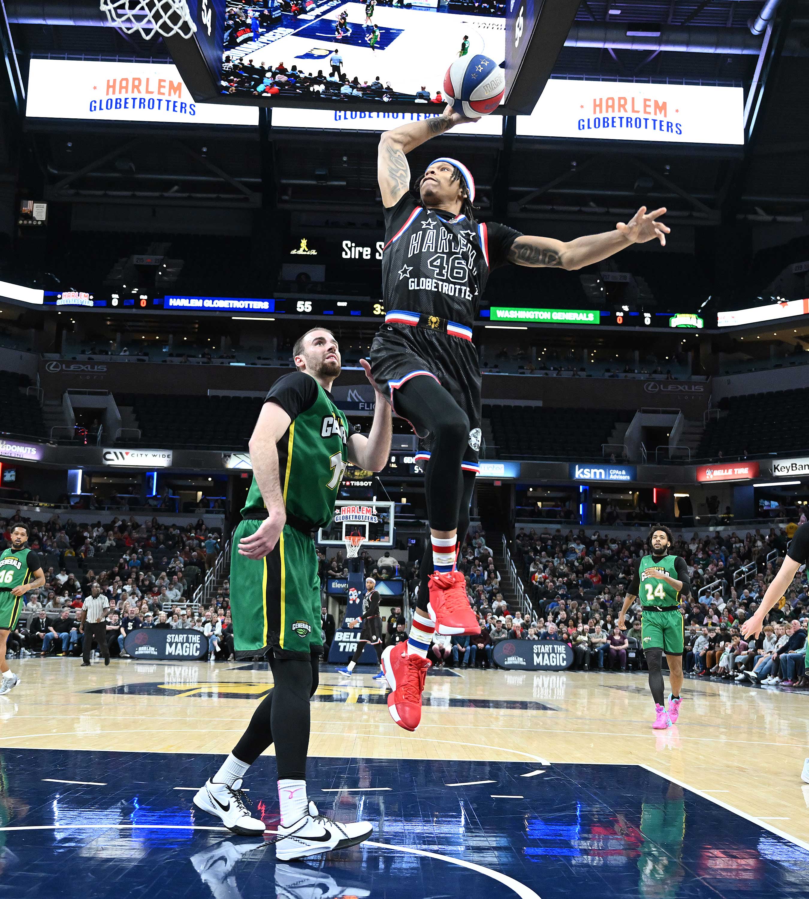 The Harlem Globetrotters beat the Washington Generals at Gainbridge Fieldhouse on Saturday, January 18.